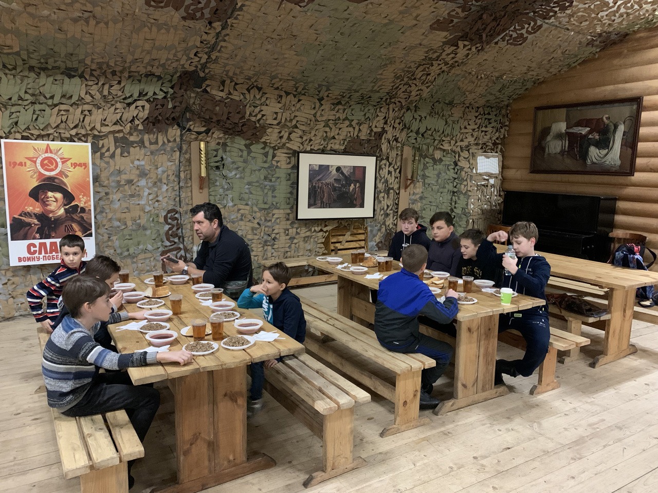🏕 Ребята изучили быт Партизанской деревни, где нас ждал вкусный полевой обед и даже общение с оленями, осликами и кроликами.